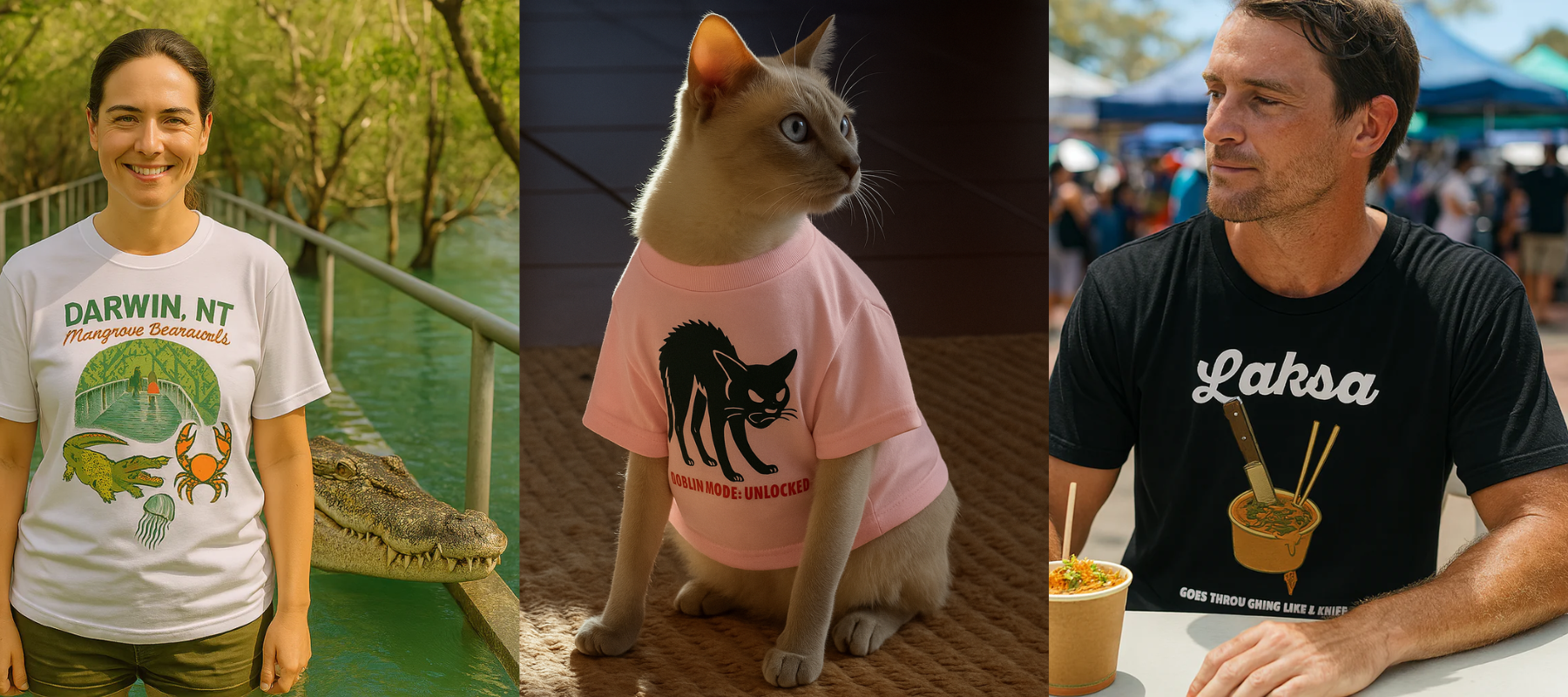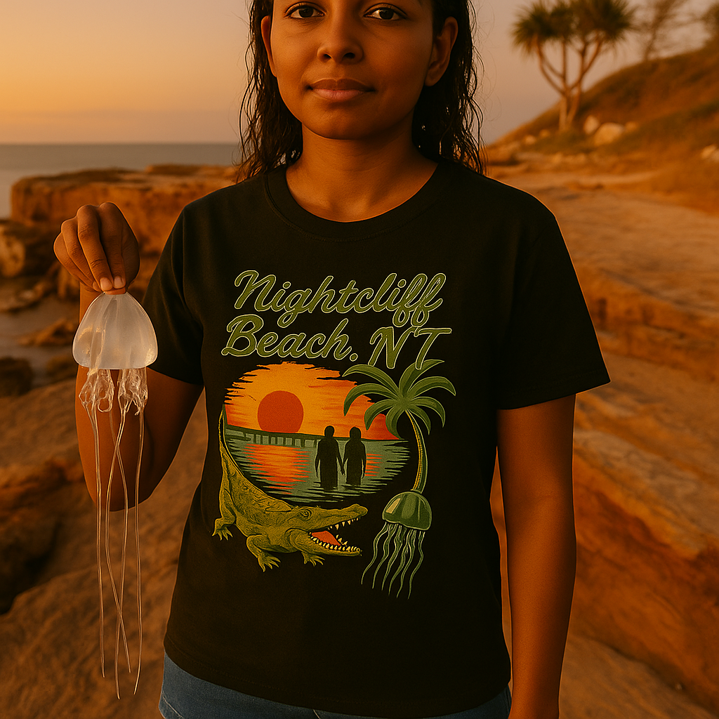 At That’ll Do, NT, we keep it simple: decent cotton tees, weird designs, printed in Australia. The inks are water-based and environmentally friendly—not that we’re here to brag about it. They’re soft to the touch and hold up in the wash, which is all anyone really wants.