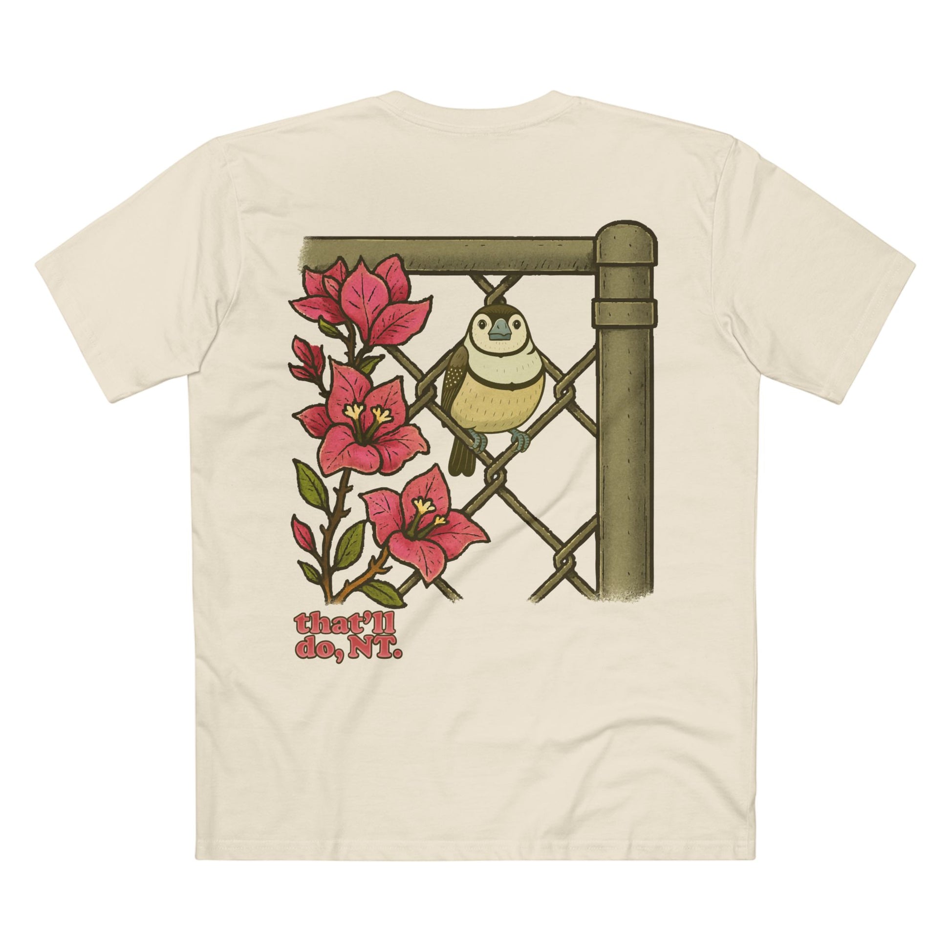 This special edition tee gives a nod to the most common, and somehow still underrated, bird in the Territory. Printed on light cotton (white, beige, pink).