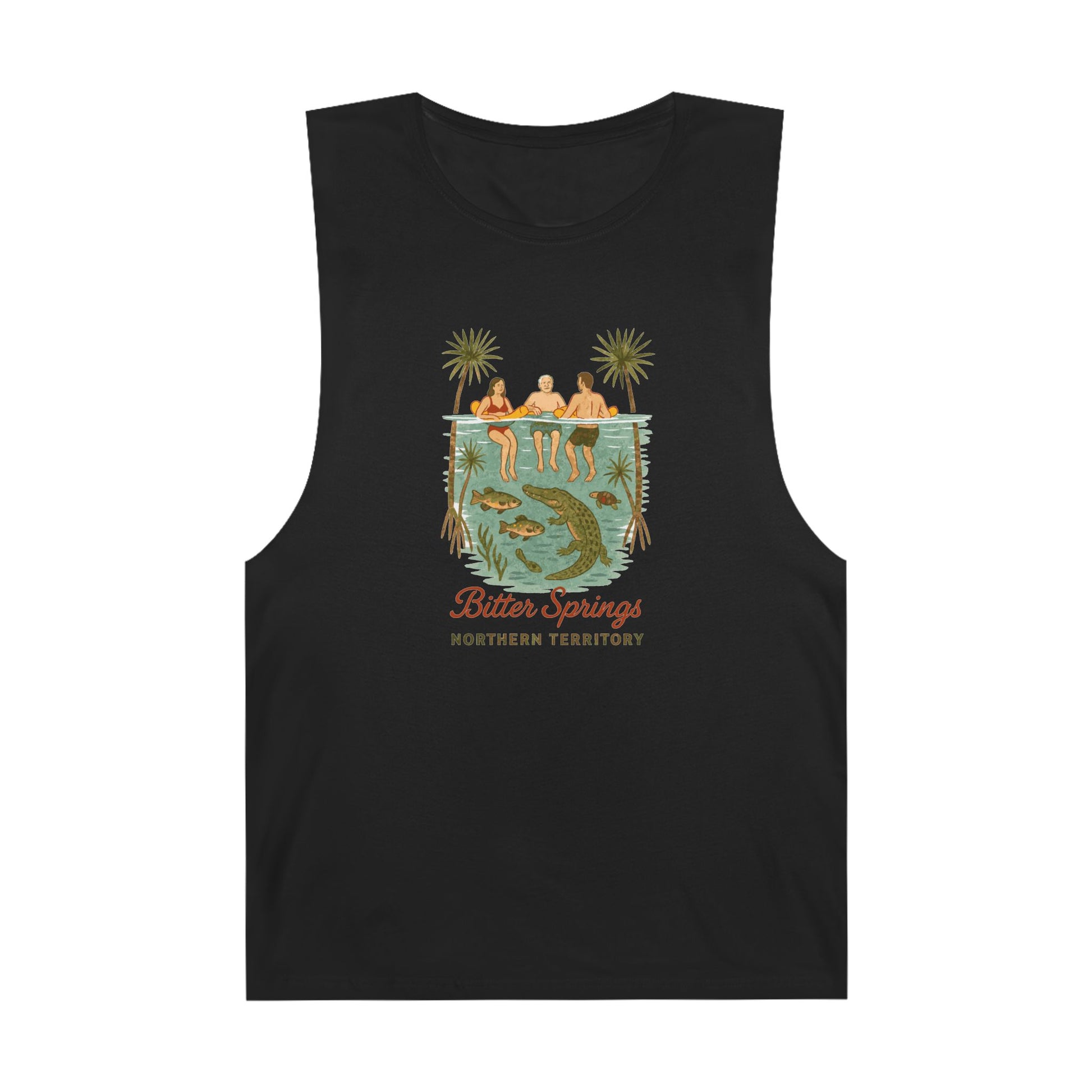 A crisp tank featuring Bitter Springs—closed to swimmers due to a possibly-not-there saltie. Classic NT vibes: beautiful one minute, full of teeth the next.